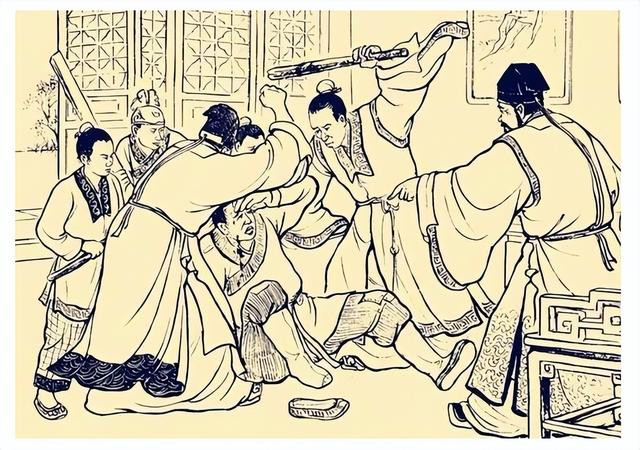 黄财主洋洋得意:骆秀才,现在你没话说了吧,来人啊,给我狠狠打,将他关进柴房!